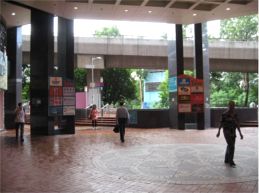 この画像の方向へ歩いて行きます。 道路の高架下を左方向へ進みます。 信号を渡れば下の左画像の前へ出ると思います。 |