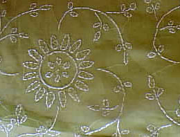 渋めのモスグリーンのコットンオーガンジーに 白で花模様の手刺繍がしてあります。 後ろはハトメを開けて革ひも&ビーズの飾りを 付けました。 脇ボタン着脱。さらっとした夏用裏地使用。 9号。