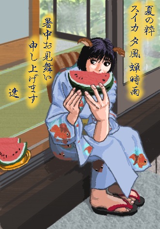 ヘタな俳句も付いてます。 「夕涼み スイカ 涼風 夏の粋」 ――にしようかとも思ったんですけど……夕方に見えないのでヤメ(笑)。