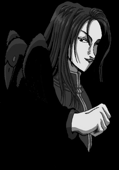 「鴉の王……」 唐栖は、髪をかきあげ、昂然と名乗りをあげた。 「鴉の王、だと……? 獣の王たる、火怒呂様に、楯突くか……!」 「ふん、僕に断りもなく、何が獣の王だ。そんな輩がのさばるのは……許せないね」 「き、貴様……。行け!」 運転手の叫びと同時に、1頭の山犬が、唐栖に飛びかかった。 が、その右腕に留まっていた鴉が、すかさず飛び立って迎撃した。 「ぎゃうん!」 犬は目をえぐられて、地面に落ち、鴉は、唐栖の肩に戻った。 「無駄だよ。鴉は、都会の食物連鎖の、頂点に立つ生き物。 犬や狐程度の小動物では、相手にならない。人間である、お前でも……ね」 「くっ……」 その時、運転手の手元に、刃の光が輝いた。 「この!」 大きなサバイバル・ナイフが、手裏剣のように鋭く投げつけられ、唐栖の 顔面を襲った! 「……!」 獣に憑依された者が、武器を使うとは思わなかったので、唐栖は、完全には避けそこねた。 ナイフは、唐栖の顔をかすめ、髪を幾筋か切り散らして、飛び去った。 顔には当たらなかったようだが、 たとえ髪といえども、自分の体に当てられたのは、確かだ。