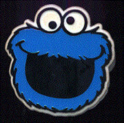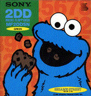 ●印刷物で、完璧な“クッキー・ブルー”はかなり少ないで す。が、クッキーのイメージを壊していなければ、まぁよし とします。と言うのも“クッキー・ブルー”は、DICの何番 だとか、CMYKで何%、、などで表すことが難しいのです、 あくまでイメージを重視します。 (c)Jim Henson Productions,Inc./ソニー株式会社/floppydisk |
