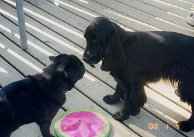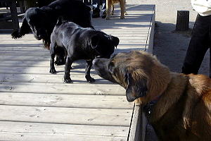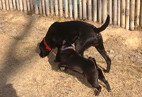 ケビンは黒ラブの子ととても気があって遊んでいましたがバーニーズの子は苦手なようで怖がっていました。