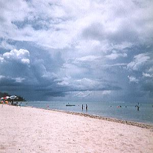 9月のGUAMは雨季なので空は今一つですね。 でも、白い砂浜、綺麗な海はさすが GUAMって感じ。 風は吹くと 7.5m2前後でプレーニングらしいです。