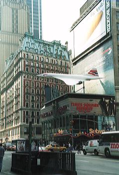| 可愛い建物と、地下鉄駅ビルの上にはコンコルドの立体看板? ニューヨークらしいシーンです。