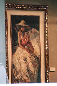 | Royoというスペイン作家の絵をギャラリーの外から。 今回、これ、大変気に入りました。 光と女性の柔らかさとを鮮やかな色使いと共に見事に表現しています。 1枚ものなので、安いもので $8,900〜$23,000と手が出せませんでしたが、欲しいなぁ、この絵。 彼の作品に関する情報などありましたら、是非、私までご連絡ください。 |