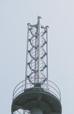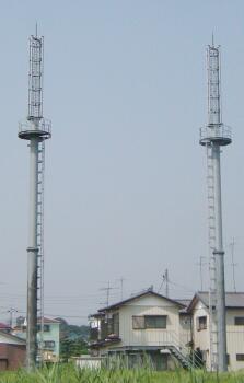 形式的にはコーリニアで、写真のように並んで建っていることが多いようです。ポケットベルは基本的に、同一周波数で複数基地局から電波が送信されています(例えば東京なら 7 局程度でカバー)。