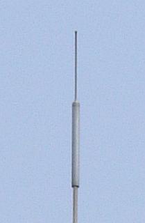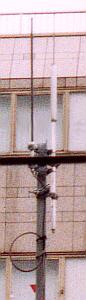 これは首都圏でみかけた、業務線用のスリーブアンテナです。左側の黒い棒ではなく、右側のものがそれです(^_^;)。