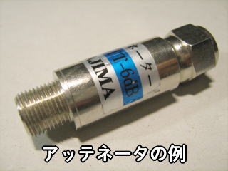 ※注 例えば主送信所のチャンネル群が 20〜28ch、県域局が 30ch の場合に必要な混合器の具体例をあげます。 ・県域局の入力特性が 30ch 以上通過のハイパスフィルタ ・主送信所の入力特性が 28ch 以下通過のローパスフィルタ 以上のような組み合わせの他、県域局側のみ 30ch 以外をカットするバンドパスフィルタを搭載したもの、などの利用が考えられます。受信チャンネルの組み合わせや地域により千差万別です。 フィルタには下記の種類がありますので選択の参考にされて下さい。 ・特定帯域以上のみを通過する、ハイパスフィルタ ・特定帯域以下のみを通過する、ローパスフィルタ ・特定帯域のみを通過する、バンドパスフィルタ ・特定帯域のみをカットする、バンドエリミネートフィルタ ※ハイ/ローパスフィルタはそれぞれの地域により主用送信所と、県域局を 別途アンテナで受信するためなどに混合器に内蔵されたものがホーム センターで見かけることもある。 その他アッテネータの例で示した写真のようなタイプもあり。 前出のバンドパスフィルタ、バンドエリミネートフィルタ(トラップと表記されていることもある)は、更に利用できるチャンネルが限られますから注意してください。また需要数の関係によりこれらは受注生産となってしまう場合もあります。 |