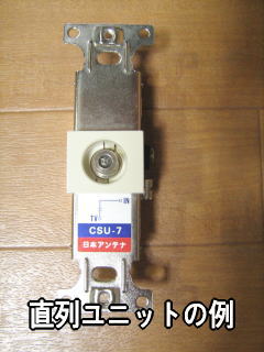 | その他長期間未使用だった部屋のアンテナ端子で、なおかつその間に増改築などを行った場合は家主も知らぬ間に、配線が切断されてしまっていたり(あるいは接続が不完全)などの理由で、受信不可能な事例も。 なお、これは極まれな例だと思いますが難視聴対策 CATV や、地域共聴システムが導入されていた地域でやはり特定の部屋だけ受信が乱れる、という症状に遭遇したことがあり本当に参りました。 原因はいい加減な配線工事のため、既存アンテナが生きておりこれと直接壁の直列ユニットで(中間用)接続されていた特定の部屋のみ、逆結合(ロスがあるうえ空間波と干渉して正常受信できない)で共聴システム側の信号が入力されていた、という呆れるような最悪のパターン。 この場合は直列ユニットの接続方向を入れ替え、既存アンテナ側配線を外すことで応急処置ができましたが、後日端末用に交換したのは言うまでもありません。(右写真は文字通り配線の末端に用いる端末用直列ユニット) なお念のために書いておきますが分配器は、全端子に等しいレベルで”分配“されるのに対し分岐は、レベルが均等ではないのが大きな違いとなります。 集合住宅での特別注意事項 これはアパートやマンションといった集合住宅や、雑居ビルなどで共通の最優先留意事項で、とくに中間用直列ユニットの場合は絶対勝手に触らないこと!。 これは同一建物内で共聴設備の設計上、中間ユニットの場合は下流に他人様の部屋などが接続されているためで、必ず大家さんや管理会社などに問い合わせた上で工事や改善を依頼してください。 場合によっては下流に接続された多数の部屋(例えば階下全ての部屋等)に、障害を及ぼす可能性があるのです。 当サイトの警告を無視し勝手に工事をしてしまった場合、最悪工事期間中は下流に接続された部屋全てにおいてテレビ視聴が不可能な状態に陥ります。これは駐停車禁止場所への安易な駐停車と同様、大変な迷惑行為ですので絶対に行わないでください。 ※他人様への思いやりと思っていただければ幸いです。「情けは人(他人)のためならず」です!! (古っ)。 |