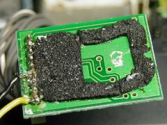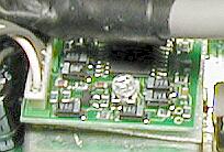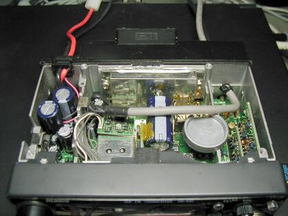 参考資料・スケルチ信号取出の実際 ここでは典型的な、トーンスケルチユニット後付タイプの、旧型リグを素材にしてスケルチ信号取出し改造を、簡単にご紹介したいと思います。かつての、高速パケット用信号取出しに比較したら、超カンタンです。 今回の素材は、送信出力不良(1mW 位の感じ。自前修理済)で某 OM 局に頂いたアルインコ DR-450 です。概ね、手順は次のような感じです(T さん本当にありがとうございました。リグは絶好調ですm(_ _)m)。 1 分解 2 トーンスケルチユニットの特定 3 トーン検出信号取出しポイントの特定 4 配線・線止加工等 5 組み立て・動作試験 良くわからない方は、マニュアルなどをご参照の上、特定されてください。大概は、数p角の小さな基板に IC がひとつ、水晶が一つ載ったものです。 参考までに右の方へ DR-450 のトーンスケルチユニット写真を、掲載しておきます。 次に、トーン検出信号が出ているポイントを探します。これも簡単で、テスタのマイナス側をリグのシャーシなどに固定し、更にプラス側でリグ本体とユニットをつなぐコネクタのピンを、順番に探ります。 改造対象のリグを、トーンスケルチ ON 状態にして、他のトーンを載せられるリグから短く送受信を繰り返しながら、一つずつピン電圧を測ればすぐ見つかるはずです。 ただし、既述のようにリグによって、スケルチ信号は様々です。ただ、データ端子ではなくトーンスケルチユニットから、直接取出す場合はポジティブなものか、ネガティブなものかが多いかと思われます(ポジ:開=HIGH/閉=LOW・ネガ:開=LOW/閉=HIGH・REMARKS:どちらも勝手な呼称)。 当局の使用した、DR-450 はネガティブなもので、トーンスケルチが開いたときに LOW(0V 付近)、閉じたときに HIGH(5V 付近)という動作でした。また併せて、トーンスケルチユニット上のグランドピンも、見つけましょう。 両方みつけたら、メモなどにピン位置を書き写して完了です。 当方の場合、黄色がグランド、黒がトーン検出信号ですが、各自のリグでピンが違いますので、十分留意の上作業されてください。 注意点は、確実なハンダ付けとハンダブリッジしないこと、細めの線材を用いる事です。また、ECHO LINK I/F との接続コネクタですが、当方ではすでに DATA 端子用として、D-Sub9 ピンを使用しているので、いらない PC/AT 用シリアルケーブルを切断して、コネクタ部分を利用しました。 この部分は各自の I/F にあわせて、コネクタを使うなり直結(ボカスカ)なり好きなようにされてください。当方の使用したリグには幸い、予備アンテナケーブル用の貫通穴があり、それを利用して配線を引出しました。 このような利用可能な穴がない場合、筐体の一部にヤスリで凹状の加工をして、配線を通すか適当に穴を開けてかまわないと思います(^_^;)。配線を外に引出したら、きちんと線止めをしてリグの改造は完了です。 参考までに、今回改造したリグの全体写真と、配線引出し部分の写真を以下に掲載します。右の写真、白っぽい方がスケルチ信号線です。 |