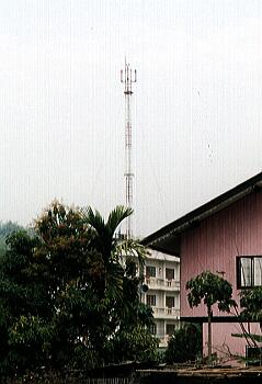 今回タイ国内を、北部国境から首都バンコクまで、のべ 1000Km 近くを移動中にいろいろな、GSM 基地局や公衆電話、各種アンテナ、通信設備などを調査してみました。 タイは、南は北緯 6゜、北は北緯 20゜と南北に長い国土で気候もそれなりに、変化があります。私の訪れた 1 月は向こうの冬らしいですが、北部でも日本の 6 月くらいの陽気、南部のバンコクでは日本の真夏以上の暑さです。 首都バンコクは、東経 100゜29'、北緯 13゜44'付近に位置し、東南アジア有数の都市で郊外の工業地帯には、多くの有名メーカー工場があります。私の使用している、IBM の HDD や富士通の MO ドライブもタイ工場製です(MADE IN THAILAND)。 蛇足ですがタイのテレビ方式は PAL で、ホテルにあるテレビも PAL/NTSC の、マルチシステム・多言語仕様が多かったのが、とても印象的です。前面入力が解放されていたので、旅行者がビデオカメラなどをつなげる、というメリットがあり嬉しい限りです(^_^;)。 現地の情報によると、タイでは多くのテレビ・ビデオがマルチシステムらしく、ビデオソフトなども NTSC/PAL の違いを気にせずに扱えるそうです。また、国内では絶滅危惧種である VCD も売られていたのが、いかにもアジアちっくな印象でした。 GSM の概要 GSM は、ヨーロッパで開発され現在、最も使用できる地域が多い事実上の世界標準です。お隣の中国や、台湾でも GSM ですし北朝鮮も最近、導入しました(韓国は CDMA のみ、日本は GSM 以外の PDC/CDMA 等混在)。 方式的には GMSK 変調を用い、TDMA-FDD/S-FH CDMA を組み合わせたもので、基地局設備のコストを考慮し多重数は 8 となっています(ハーフは 16)。主に 900MHz 帯が使用されてており、その他にも都市部向けに 1800MHz 帯や、北米 PCS に対応するための 1900MHz 帯、と 3 バンドあるのが特徴です。 ほとんどの端末機は、900/1800 のデュアルで 3 バンド機も珍しくありませんでした。この方式では、標準で国際ローミングが可能で(一部制限されている地域もある)200 ヶ国前後でそのまま使用できます。 端末、地域により E-MAIL/WEB(WAP) サービスも受けられるので、このあたりは日本と似たような状況のようです。端末機は、全体的に非常に小さく薄型で、ストレートタイプが多いのが特徴でしょうか。のちほど、集めてきたカタログを別コーナーに載せたいと思います(^_^;)。 また 3G に組み込まれた、GSM の高速データ通信規格 GPRS に対応したものも多く、実質で 40Kbps 程度のスループットが得られるようです。 端末もほとんど電卓のような小さく、薄いものがあったのには少々ビックリ。国内でも売れるんじゃないかな、と思うほどです。近年、パカパカと折り畳みばかりの国内メーカも、少しは見習ったらどうでしょうか(車のような能なしデザイン横行断固反対)。 本当に GSM/CDMA を問わず海外の端末機は、非常に個性的でバリエーションに富んでいます。全て右へ習えの日本とは違い、まったくうらやましい限りです。 |
