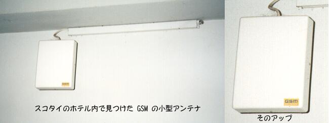 タイの GSM の基地局・端末機など ※写真は典型的なステー支持ビル上タワー 大きさは、15-20m 程度のものがおおく都市部では、ビル上から 10-15m 程度の高さにセクタアンテナを取り付けたものが、多かったです。 そしてアンテナタワーは必ず、赤白に塗られているのが特徴でしょうか。自立型、ステー支持を問わずこの色になっていることから、法令で定められているのかもしれません(^_^;)。 GSM の基地局タワーではありませんでしたが、地方都市の大型のステー支持タワー(業務局・地上高は 30〜40m 位)ではそのステーにも航空障害灯が取り付けてあったのが、とても印象に残っています。 おそらく、近くに空港とヘリポートがあること、そのヘリも目測で 200〜300 フィートと超低空を飛ぶためではないかと思われます。夜にこれを見つけたとき、なんで空に向かって斜めにイルミネーションがついているんだ?、と不思議に思いましたが明るくなってみたら、タワーを支持するステーワイヤーでした(^_^;)。 なお、GSM のキュービクルは国内の PDC とほぼ同程度で、白く塗られているものが多かったです。なかには、超小型 BS らしきものもありこれに関しては、大きめの配電盤程度でした。 またサービスエリアは、2004 年 01 月時点で半年ないし一年程度前に、全国網が完成した模様で非常に、広い地域で使えるのが印象的でした。ほぼ全国で、都市部から郊外〜山間部に至るまで、ほとんど使えるのがすごいと感じました(かえって都市部の方が穴があるそうで、いうならばドコモ PDC 並み?)。 ただむこうでは、まだまだ携帯電話は高価で日本円にして、数万円はするそうです。手元のカタログによれば、安いもので数千バーツ、高いものになると二万バーツ程度となっています(1バーツ≒3 円程度・タイの月給は 八千〜一万数千バーツ程度)。 また料金はプリペイドでは基本料金はなく、発信で 1 分あたり 3 バーツ(日本円で約 9 円)というのが標準的な通話料とのことでした。向こうでは、こちらと違い多くの人がプリペイドを利用しているとのことで、概ね 8 割程度がそうではないかとのことです。 日本ではなじみ深い料金後払い(ポストペイド)では、概ね月額 1000 バーツ弱からのプランがあるとのことです。これらも、単位通話料、無料通話、割引の違いなどで色々と多彩なプランがあるようです。 また、SIM カードは端末機によっては、購入時にサービスでつけてくれるそうで、そのままタイ国内のどの携帯電話会社でも、好きなものを選んで使えるそうです。 ※左側写真は地方部の、大型基地局の例。 タワー根元にあるのがキュービクル また写真はありませんが、バンコクなど都市部に限り通常のセクタアンテナのほかに、ひとつだけを水平にとりつけたものがあるのが、良く解りませんでした(^_^;)(高速沿いの線的カバー用??)。 それから都市部では、ビル上に国内のような鋼管柱タイプの基地局も、若干見受けられました。セクタアンテナに関しては、通常の筒型と都市部では平面型が多かったのが印象的です。 その他、日本と異なるのは平屋の建物の屋上にも、GSM セクタアンテナが設置されていることです。まるで、コンビニの上にある PHS 基地局みたいな感じで、あの大きめなセクタアンテナが、ドンと構えている有様はなんとも異様でした(キュービクルは建物裏にあった模様)。 あとは推測ですが、基地局付随の小型パラボラの形状・向きから都市部では、無線エントランスも多用されている模様です(^_^;)。このあたりは、もっとつっこんで取材したかったところです。 なお、タイ国内には 3〜4 社程度の GSM オペレータ(事業者)があるようです。それから、'03 年より CDMA2000x1 のサービスが開始されたそうで、都市部などから順次全国網を構築中らしいです(タイ首相は反対らしい&au の国際ローミング可)。 屋内小型アンテナ 大規模な遺跡公園で有名な、スコタイのホテルでは屋内にエリア補完用とおもわれる、GSM 小型アンテナを見つけることが出来ました。これは、ホテルの建物が 6 角形で中庭のある構造となり、内側はあらゆる方向からも影になるためと思われます。 ※エリア補完用と思われるフラットアンテナ。横面の取り付け注意シールの 図からは、GSM ステッカーのある面が放射方向であることがわかる。 このフラットアンテナは、ちょうど A4 程度で昔の小電力コートレスの、親機くらいといったらいいでしょうか(^_^;)。建物は、既述の通り完全に 360゜を囲まれる中庭をもつ構造のため、この 国内でも、地下鉄などの閉鎖空間で天井取り付けの、小型アンテナをみることがありますが、壁面取り付けのものは初めて見ました(国内にもあるのカナ)。ドコモの IMCS の様なものか、詳細はわかりませんがこれらがまとめて、小型基地局につながってるのかな?などという感じがします。 GSM といえば、ハーフレートでも PDC のフルレート並みの、伝送レートがありますが通話品質の方はなかなかクリアでした。フル・ハーフの