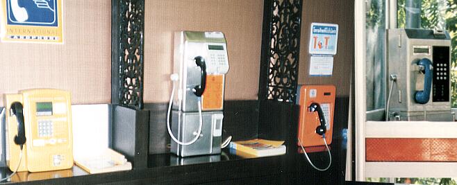 有線系、放送・業務局等について タイでは街角などで、比較的公衆電話をよく見かけました(ヘタすると日本より多い?)。ホテルや観光客の立ち寄るような店などでは、国際通話対応のクレジットカード電話機が、複数おいてありました。 ※右側写真は標準的な公衆電話 屋根が色違いだが昔の日本の物と似ている 右の写真は、全国的によく見かけたタイプの公衆電話機です。詳細は不明ですが、テレフォンカードもあるようです。タイの公衆電話の中でも 5 バーツ専用機種は要注意です。 スタートボタンというのがついているものがありつながっても、これを押さないといつまで経っても相手に声が伝わらない、と言う良くわからないシステムになっています。 観光客がよく、これを押し忘れてつながらない!、とあわてるとか(^_^;)。またホテルの客室で見かけた電話機は、プッシュボタン式ながら電磁式ベル、というかなり古いものもありましたが新しいものは、国内のものと大差ない感じです。 個人的には、GE の電話機が部屋にあったのが少し嬉しかったです。 電話の柱上端子箱も、日本より小型でシンプルなものが多かったのが印象に残っています。銀色に輝いていたので、アルミかなにかかもしれませんが詳細は不明です(^_^;)。また地方や山間部でも、ちゃんと電話・電気がきていることから、有線通信事情は比較的いいようです。(少なくとも電話線が盗難されるような国ではない(ボカスカ)) 国番号は、66 でタイ国内から海外にかける場合も、001+国番号+地域番号+相手番号なので昔の KDD みたいです。また通話料は、市内通話で 3 分 1 バーツ(約 3 円)とゲロ安。 1 分で \10 もとる、どこかの暴利独占企業とは、わけが違います(ボカスカ)。 下記に各地で見かけた、公衆電話のバリエーションを示しておきます。写真は、左側の三つならんだもののうち、両端はクレジットカード対応、国際公衆電話で真ん中の物が、国内専用公衆電話でした。 国際公衆電話機の受話器を上げ、手持ちのクレジットカード挿入すると、受話器からかすかに DTMF 音がしてしばらく待たされました。そのため、認証のためのダイヤルアップをしているのが解り、なんだか楽しかったです(^_^;)。 また、いちばん右側のものは北部の街、チェンマイの山間部でみつけた公衆電話機です。市街地でよく見かけたものとは、違うタイプでしたので写真を撮っておきました。 テレビなど 民家のアンテナを見ていると、VHF-LOW/HIGH/UHF と 2-3 本立っている場合もあり、あなどれません(もちろん日本の誇る?八木アンテナばかり)。 地方ではブームの支持棒がなく、やたらと素子数の多い UHF アンテナが多いのが印象的でした(20 エレ程度)。 ※右側写真は衛星用パラボラ 低緯度のため、日本人にはかなり 上を向ているように見える。オフセット型は少な目 ブーム支持棒がないため、ブームは自重でたわんでしまい、かなりしなっているのがタイっぽくて?笑えました(^_^;)。また郊外では、V・UHF 兼用のデュアルバンドアンテナも多用されています。 また都市部や、田舎でもリッチくさい家、ホテルには衛星放送もはいっていて、バンコクや第二の都市チェンマイのホテルでは、NHK ワールドも見ることが出来ました(NHK が総合、BS 等からチョイスした番組を世界に配信している)。 ラジオについては、ちょいと調査する機会がなく不明でしたが、テレビは日本と同じかそれ以上にチャンネル数があり、中国語専門の CCTV や、BBC ワールド、FOX ニュースなど地元以外のチャンネルも、地方を含めて放送されていたのがおもしろかったです(地元数 ch+CCTV+BBC の合計十数 ch 強という組み合わせが多かった)。 中国語専門チャンネルについては、中国系の人が多いお国柄だからかな?という感じですがどうなんでしょう(^_^;)。地元タイのテレビ局では、夕方はニュース、夜はドラマ、歌番組、お笑い/バラエティ?と日本と似たような編成で、なかでも HEY^3 そっくりな番組があったのには、笑いました。 また、フジテレビのドラマを現地語で放送(夕方や夜)するチャンネルもあり、非常におもしろく拝見してきました。ちょうど、私が訪れた際は「ショムニ」や「人にやさしく」が放送されており、セリフがまるで解らないのについつい遅くまで見入ってしまいました。 むこうでは、台湾や中国、韓国ほどは日本のタレント人気はないようで、書店でもひっそりと(はしっこ)、日本のタレント雑誌が売られている程度でした。テレビでは、ドラマ以外日本の芸能人をみかけませんでしたが、実際のところ向こうでの評判はどんなものなのでしょうか(^_^;)。 そのほか、むこうのドラマをチラホラみたり、テレビ雑誌もパラパラとみてきましたが、超イケメンや超かわいこちゃん(いまどき使わない!?)ばかりで、このへんは日本と同じのようです。 あとは、北部の都市チェンマイの山寺では、修復前の寺院の様子を地元テレビ局が取材に訪れていました(近々修復工事があるので、修復前・後を収録