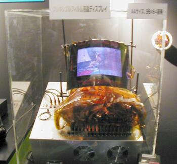 また、今年は”紅白“をデモ表示しているこの手の試作ディスプレイ目前には、必ず「著作権のため撮影はご遠慮下さい」、の文字がありました。残念ですが、昨年と同じソース('03 年紅白の一部)でしたので、よしとしましょう。