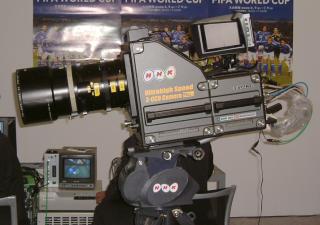 ポイントは、単板式になったことで光学系がシンプル(プリズムなどがいらないため)になり、大幅な小型化を達成できたと言うことです。比較のために、従来型の超ハイスピードカメラの写真を、掲載しておきます(左の写真・だいたいふつうのスタジオカメラ位)。