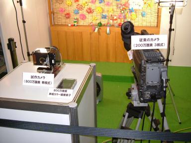 肝心の単板式カメラの画ですがさすがに、3板式と比べてしまうと色再現性が若干落ちていましたが、解像度的にはパッと見た目には劣らない感じでした。展示では試作機・従来機ともディティール・エンハンサを切ってある旨の注釈がありましたから、単板式であることを踏まえればまずすずではないかと思います。