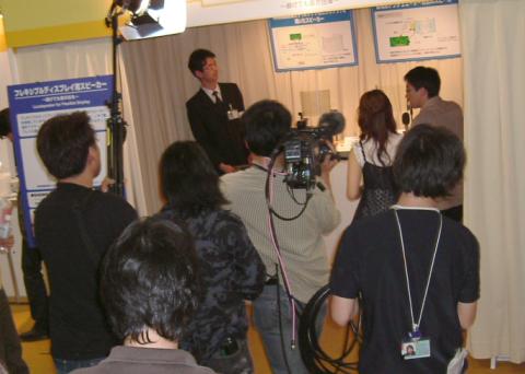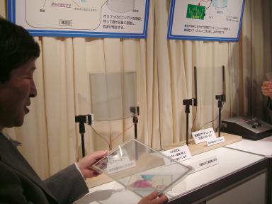 現在、実用化を目指しているフレキシブル・ディスプレイへ適用可能な、薄型透明スピーカが2方式展示されていました。