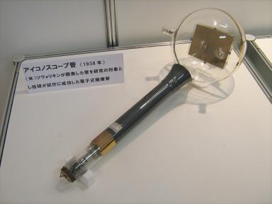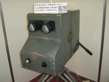 右の写真は標準初期白黒テレビ放送用(1939 年)の、アイコノスコープという撮像管を使ったテレビカメラです。カメラ自体は以前にもご紹介した気がしますが、今回はなかうなか説明しづらい”撮像管“であるアイコノスコープ管が展示されていましたので改めてご紹介します。