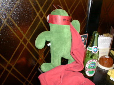 酒も飲んで、店のナプキンでコスプレをするサボ(これこれ)