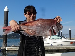 | コメント | マリーナを7時に出港し、15時半に帰港しました。珍しく苦戦をしました。 巨大なエソは、写真の端に写っている洗車ブラシと比べてみてください。大きさがわかると思います。 タイは、2匹とも1kg弱ありました。 |