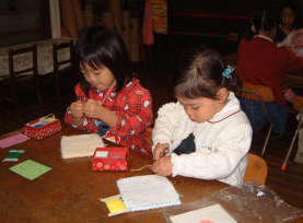 | 『幼稚園教育要領』に基き、『健康・人間関係,環境,言葉,表現』の各分野にわたって年間指導計画を作成し毎日毎日の保育過程の中で園児一人一人の個性を尊重しながら、きめ細かく温かく指導いたしております。 そして2年間、または3年間 縦割り保育での指導の積み重ねが幼児一人一人の身に付くことをモットーにしています。 |