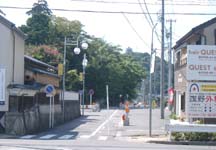 ![]() シンボル道路沿い・木曾街道突き当たりの辻にある戒蔵院と寛政10年に建立された道標 拡幅により新築された歯科医院(植栽に景観補助) |