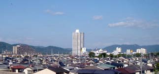 ![]() ラピオから見る小牧山 小牧山へ向かうシンボル道路(拡幅予定) 拡幅により曳家した民家 |
