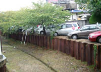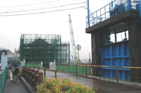 ![]() 隅櫓風の水門管理所を工事中 |