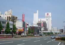 ![]() ![]() 駅前大通り(中央に路面電車) 大通り沿いにマンションの販売ルームが並ぶ 広小路通り |