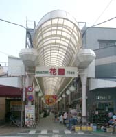 ![]() 花園通りのアーケード(花園商店街は衣料品関係の店が多い。) 車いす専門店とレンタサイクル 花園コミュニケーションスペース |