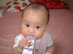 ママの携帯、かじりすぎだよぉ〜。(汗)