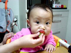 大好きなイチゴをガブリッ!