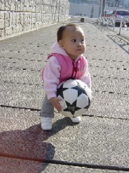 うんしょ!パパのボールは重たいな。