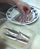 | @ いわしを手開きにする。軽く水分を取っておく。 |