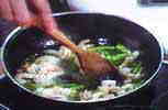 | @メカジキの身を厚さ1.5cmに切る。 エビは1cmの長さに細かく切る。 アスパラガスは3cmに切る。 |  | ||