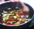 | B メカジキをフライパンから取り出し、同じフライパンにオリーブオイル(大1.5)を熱する。 オイルが温まったら、えび・アスパラガスを入れて 炒める。 エビに火が通れば、ブランディー・トマトソース・魚の出し汁を加える。 15分程煮込む。 |  | ||
