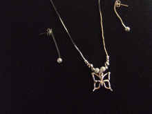 ネックレスは、蝶々がメインの長さ45cmです蝶々の隣とピアスの銀玉は同じ大きさで、銀にヤスリをかけて仕上げたものがポイントになっています(・∀・)/