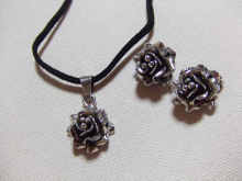 Eです。 Gargantillaという種類だけあって、 ネックレスよりも 雰囲気としてはチョーカーに 近いかもしれません(*^▽^*) 黒い紐の長さは40cmで、 ちょうど鎖骨の辺りにバラが来ます イヤリングの方はパチッと締まる上に、 飾りはシンプルにバラのみなので、 落ちる心配はありません(‐^▽^‐) かつ、銀なので片耳4gと軽く、 長時間の装着も苦になりません |