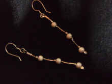 太いラメの中に、波状のラインが入っているのが特徴的な指輪です | サーモンピンクのパールが印象的なすずらん型のピアス キャッチャータイプ |