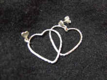 約2.5cm四方のダブルハートのピアスです 大きいハートと、実際に付けると耳に密着するところがハートなんですよ 動くたびに大きいハートが揺れ、根元にも小さなハートがキラキラします。 すごくキュートだなと思い、即決でした!! 大きなハートの方は外側が細かい波状になっていて、 そこにリングで小さなハートが付属しているので、 大きなハートの向きは自由自在です(ж>▽<)y