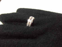 | 太めのシンプルなデザインで、内側に‘MEXICO’と彫られています。 | こちらはちょっとロックな感じですかね。7つのピラミッド型ブロックが特徴です | ここからは銀を削って模様を付けた指輪です(ノ´▽`)ノダブルのラメラインが入っています この傷つけているキラキラの部分、感触はザラザラしています(´∀`) |