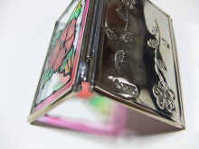 | バラが印象的な縦7cm、横5cmのコンパクトな鏡です |