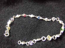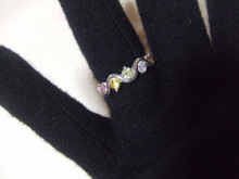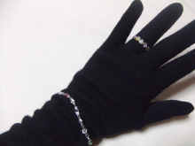 キャッチャータイプ | ピンク、黄色、緑、青、クリスタルのストーンが特徴となっていますサイズは9号です | 同じくピンク、黄色、緑、青、クリスタル+紫のストーンが特徴で、腕にはめていると銀製品特有の“シャラシャラ”という、かわいらしい音がします | 合わせると、グローブの上からでも程良く目立って、 年末年始のパーティーにも役立つかもしれませんね(・∀・) |