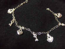 こちらは、 「メキシコにも!! こんなデザインあるんだぁ」と驚いた一品です。一目惚れしました 定番のハートとカギですが、 この特徴は やはり、 銀ならではの 「「シャラシャラ」という音ですね♪ ブレスレットなので、 一層その音が楽しめると思います。 |