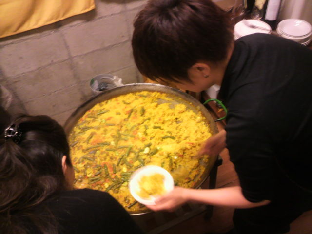 | 皆さまお待ちかねのお米料理 春野菜のパエリヤ 春野菜たっぷりとアサリで 人数より多めの32人分炊きあげました。 |