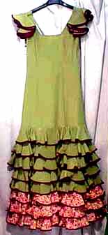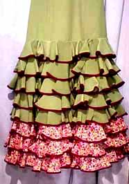 生地:緑にピンクの細かい花柄