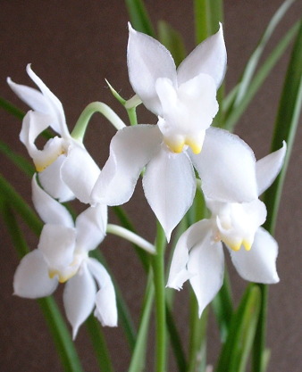 一般的に「オドントグロッサム」と言えば、花の直径が5pくらいある、赤や黄色に斑点の付いた豪華な花だが、これは大きさが2p程度と小さい。