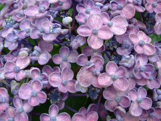 知っている人には余計な説明だと思いますが、アジサイは花びらに見えるところがガクで、