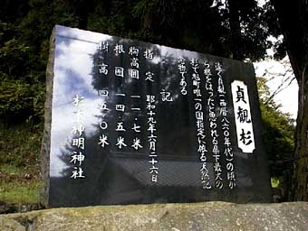 環境庁のデータ 幹周 9.40m 樹高 21m 県指定天然記念物 |
