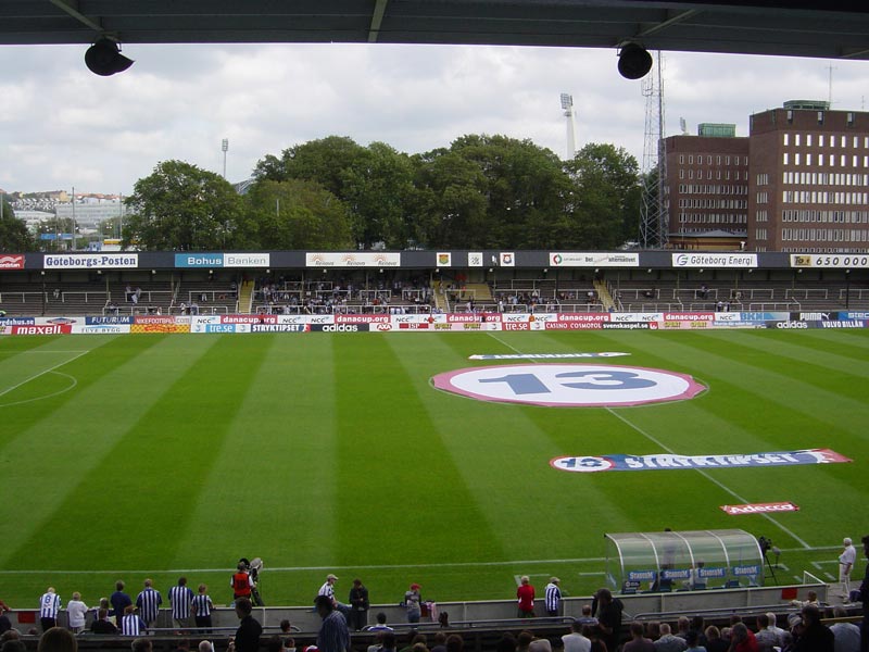 ところで試合中に面白いな、と思ったのが同時刻でやっている試合の途中経過の入り方。上でも書いたように実況で入ってくるのですが、それが映像つきということ。具体的にいえば、同じ日にElfsborgの試合があったのですが、Elfsborgが点を取った瞬間に「ポーン」というわりと大きな音が場内に響いて、ビジョンには「mal!」というゴールを示す画面が出ます。そしてそれに続いて、まさにそのElfsborgの得点シーンが画面で普通のハイライトのごとく映像リプレイされるのです。「他スタジアムの映像がこんなに瞬時に!?」とかなり驚きますね。この日は他に2試合あったのですが、2試合分の全部のゴールの映像がきました。たまたまこの2試合のテレビ中継があったから映像があるのか、それとも独自のなにかシステムがあるのか・・・その部分は謎でした。他に沢山の試合がある場合も全部流すのか謎なんですが、仮に全部一斉にあった場合(他スタジアム6つ分?)、「ポーン」「ポーン」とえらいこと沢山映像がきて見てる方は落ちつかないのでは?と思いました。実際この日も前半に他スタジアムの点が集中してたので、「またか」と途中で思いましたし(笑)。そんなIFK初観戦でした。